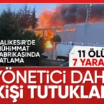 Balıkesir’deki mühimmat fabrikasındaki patlamayla ilgili 3 tutuklama